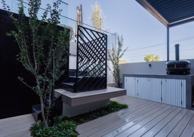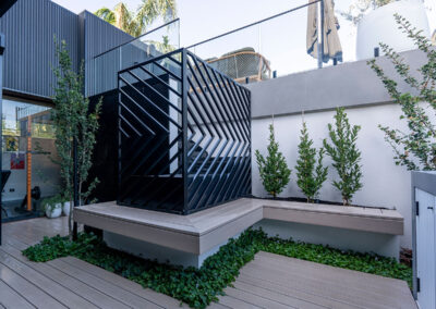 Featuring custom steel balustrades, integrated levels, and a built-in BBQ and joinery zone, the project delivers a seamless connection between structure, planting, and outdoor living.